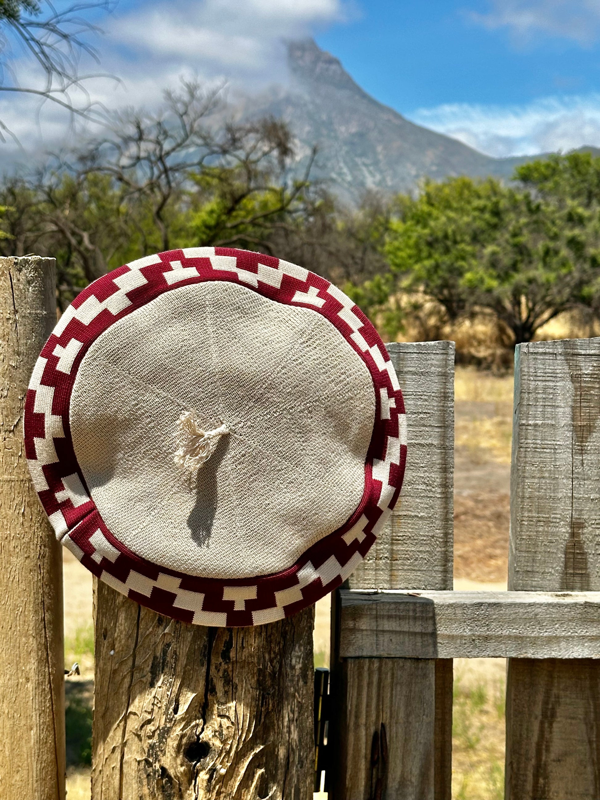 Boina Gaucha Centro Beige, Guarda Pampa Burdeo / Vuelo 32 Cm