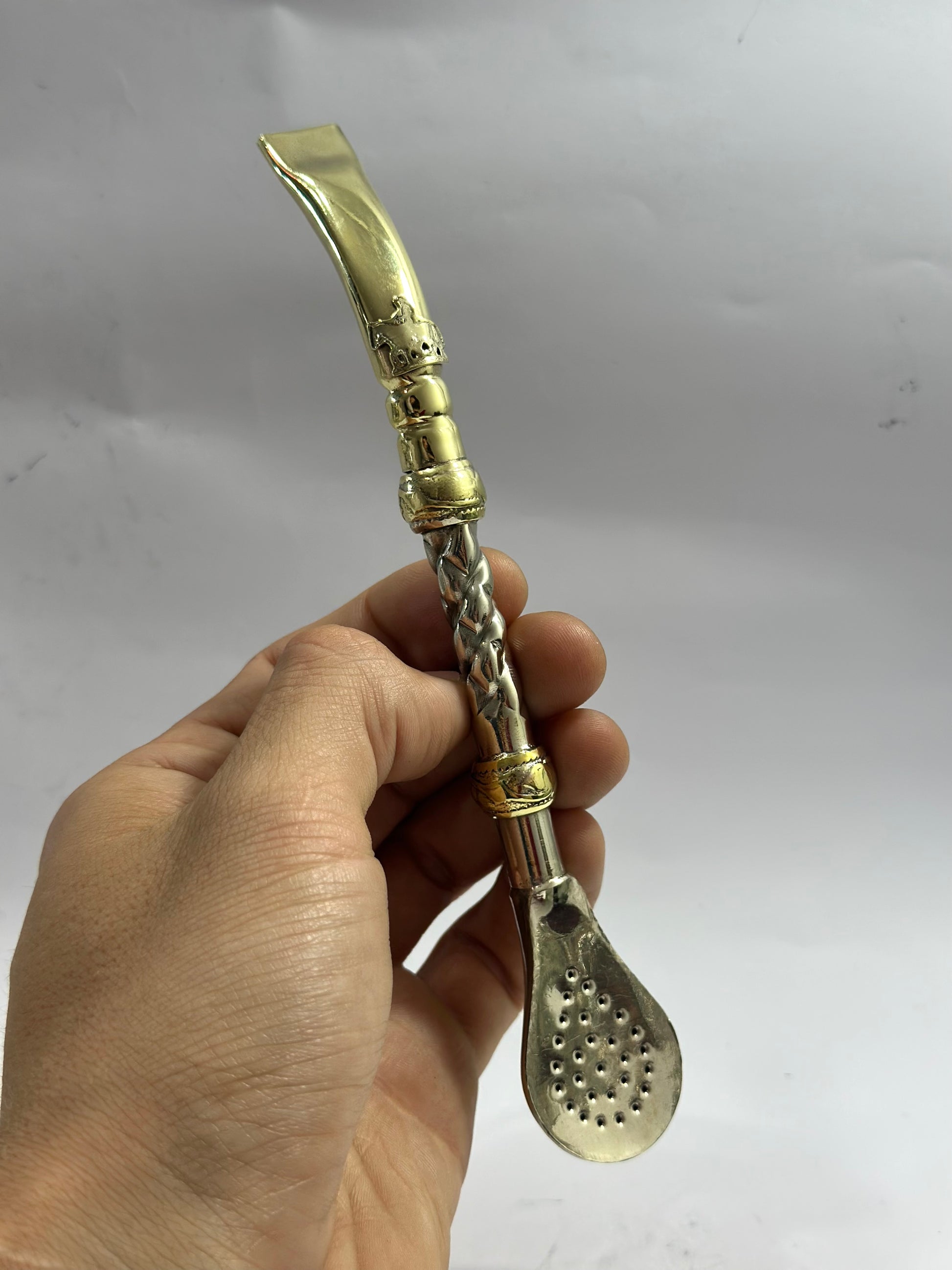Bombillon artesanal de alpaca trenzada maciza , con filtro de alpaca maciza de más alta calidad, al tomar la estructura del bombillon puedes percatarte de la calidad del material el cual trabajamos, en cuanto grosor y pureza de la alpaca como a su vez bronce. Punta pico de Loro y centro trenzado, a este diseño agregamos un logo distintivo apodado “El Gaucho”, para quienes gustan la cultura gaucha y arriera, haciendo referencia al gaucho explorando nuevos lugares por los montes junto a su fiel amigo de travesías, el caballo.