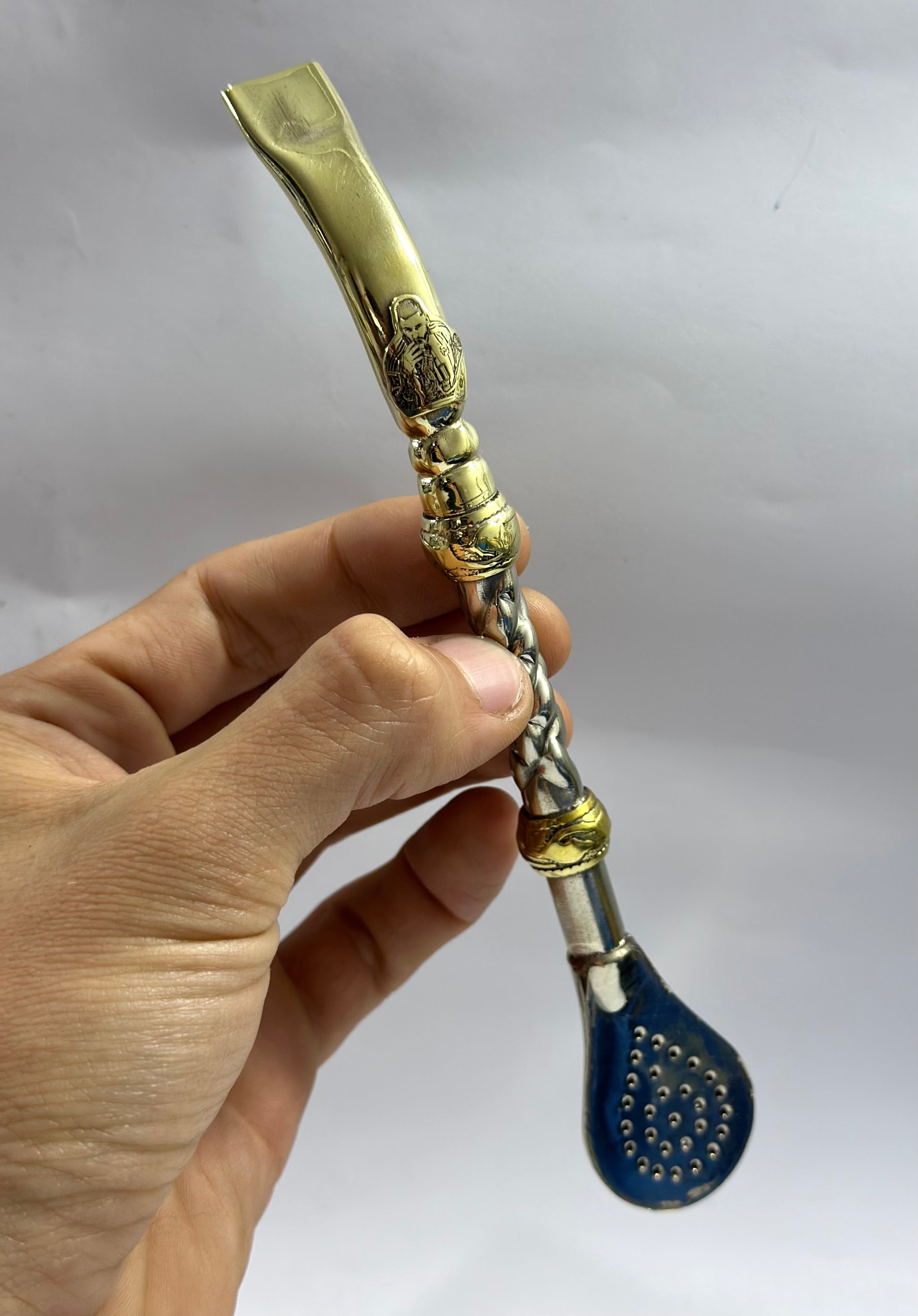 Bombillon artesanal de alpaca trenzada maciza , con filtro de alpaca maciza de más alta calidad, al tomar la estructura del bombillon puedes percatarte de la calidad del material el cual trabajamos, en cuanto grosor y pureza de la alpaca como a su vez bronce. Punta pico de Loro y centro trenzado, a este diseño agregamos el logo soldado a su estructura de Messi besando la copa del mundo, habiéndose consagrado como campeón del mundo en el pasado mundial de fútbol.