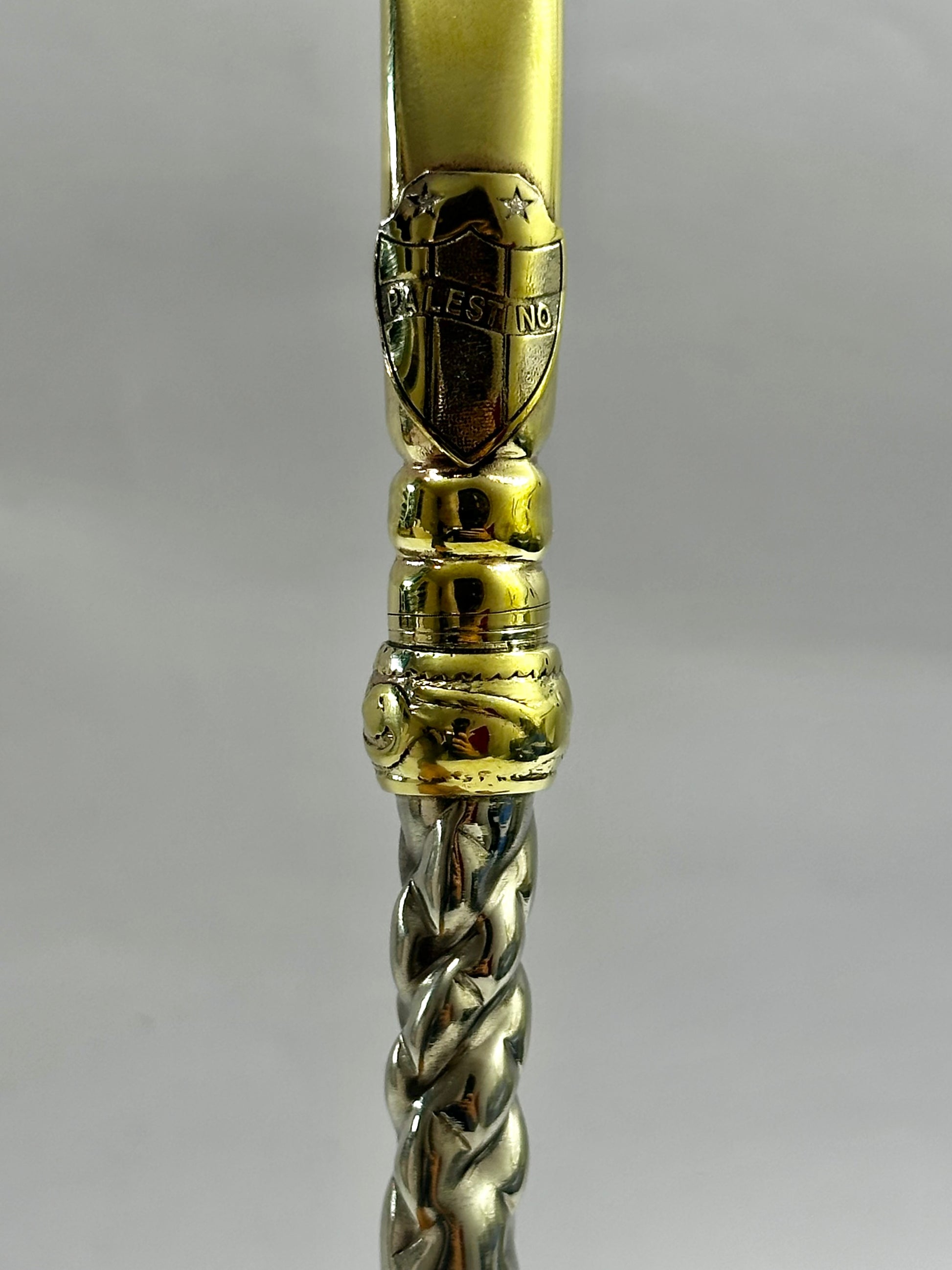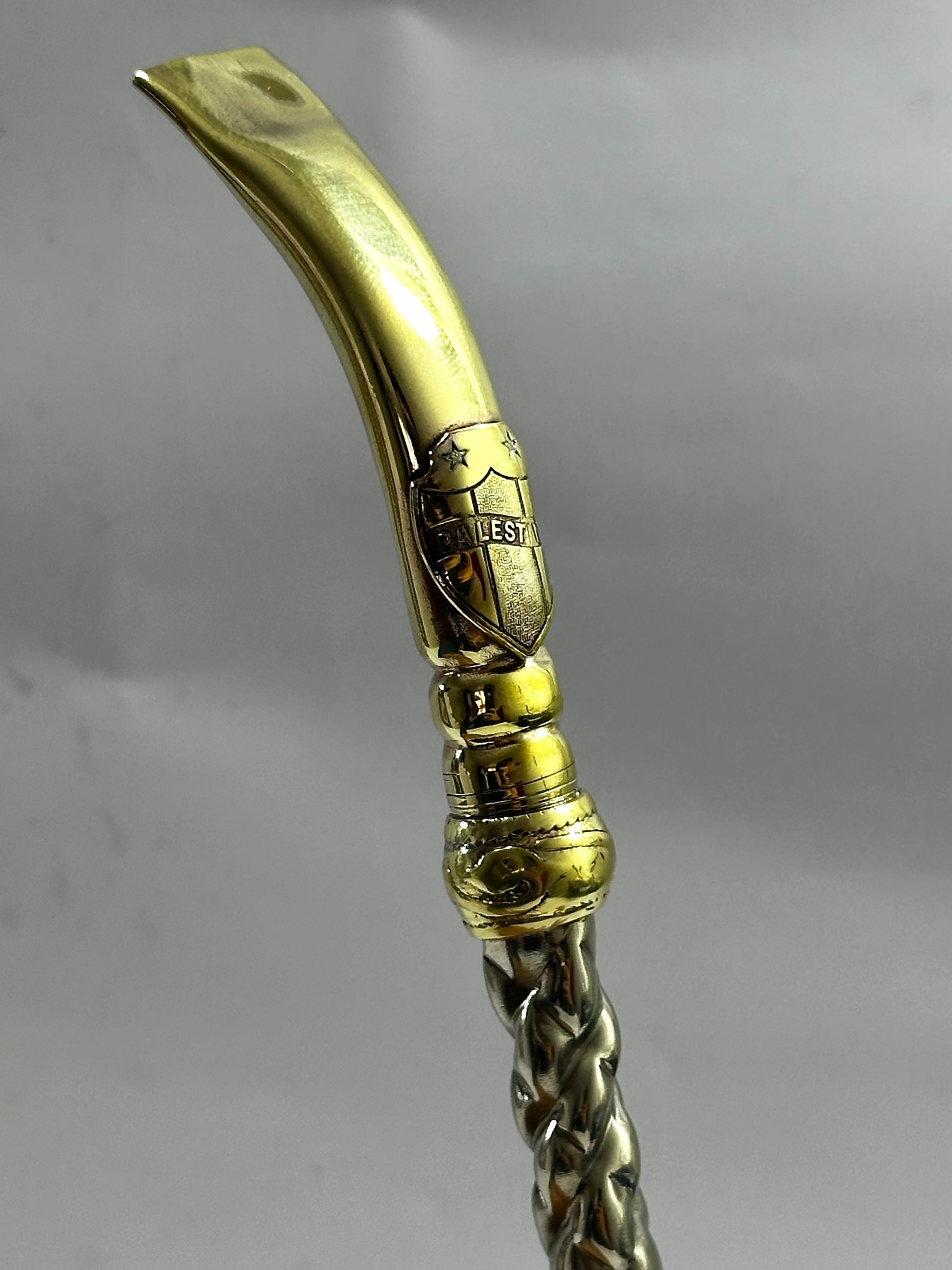 Bombillon artesanal de alpaca trenzada maciza , con filtro de alpaca maciza de más alta calidad, al tomar la estructura del bombillon puedes percatarte de la calidad del material el cual trabajamos, en cuanto grosor y pureza de la alpaca como a su vez bronce. Punta pico de Loro y centro trenzado, a este diseño agregamos el logo soldado a su estructura del club Palestino , equipo de fútbol Chileno.