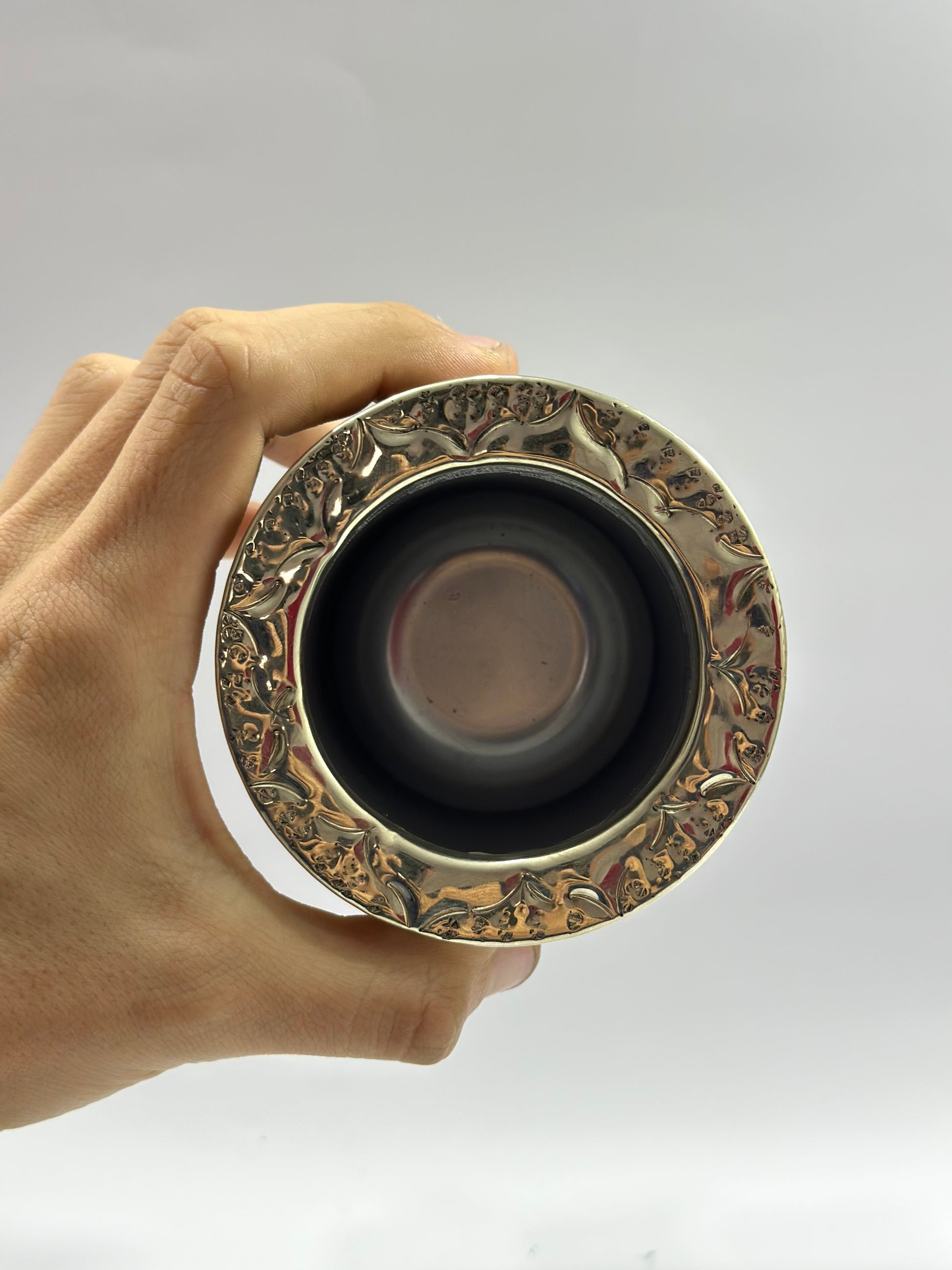 Mate imperial interior de acero con virola de alpaca Cincelada , cuenta con su exterior forrado en cuero , ideal para quienes gustan disfrutar de unos buenos mates sin la preocupación de tener que curar y cuidar en el caso de que fuera interior calabaza. Fácil lavado y práctico.