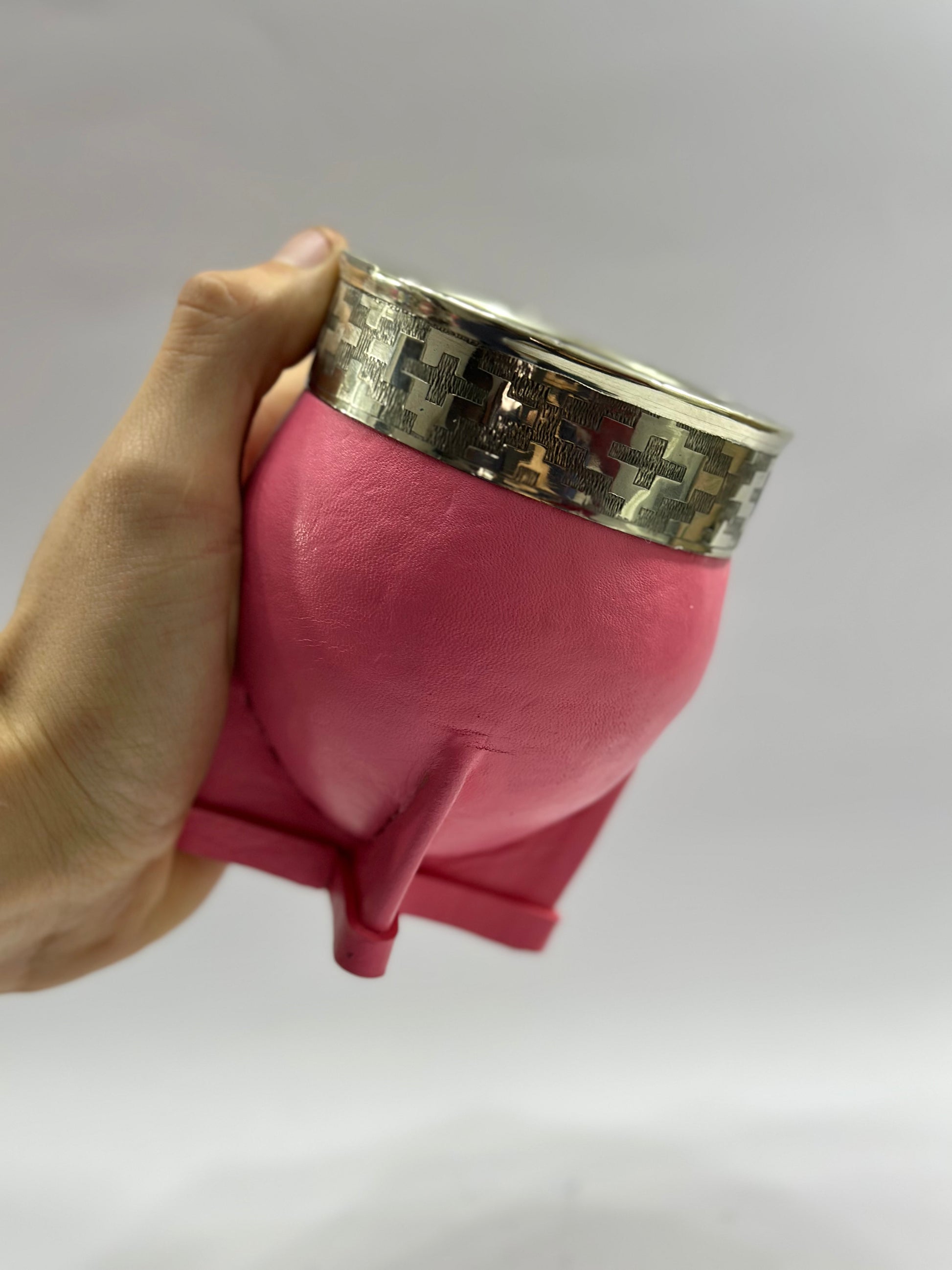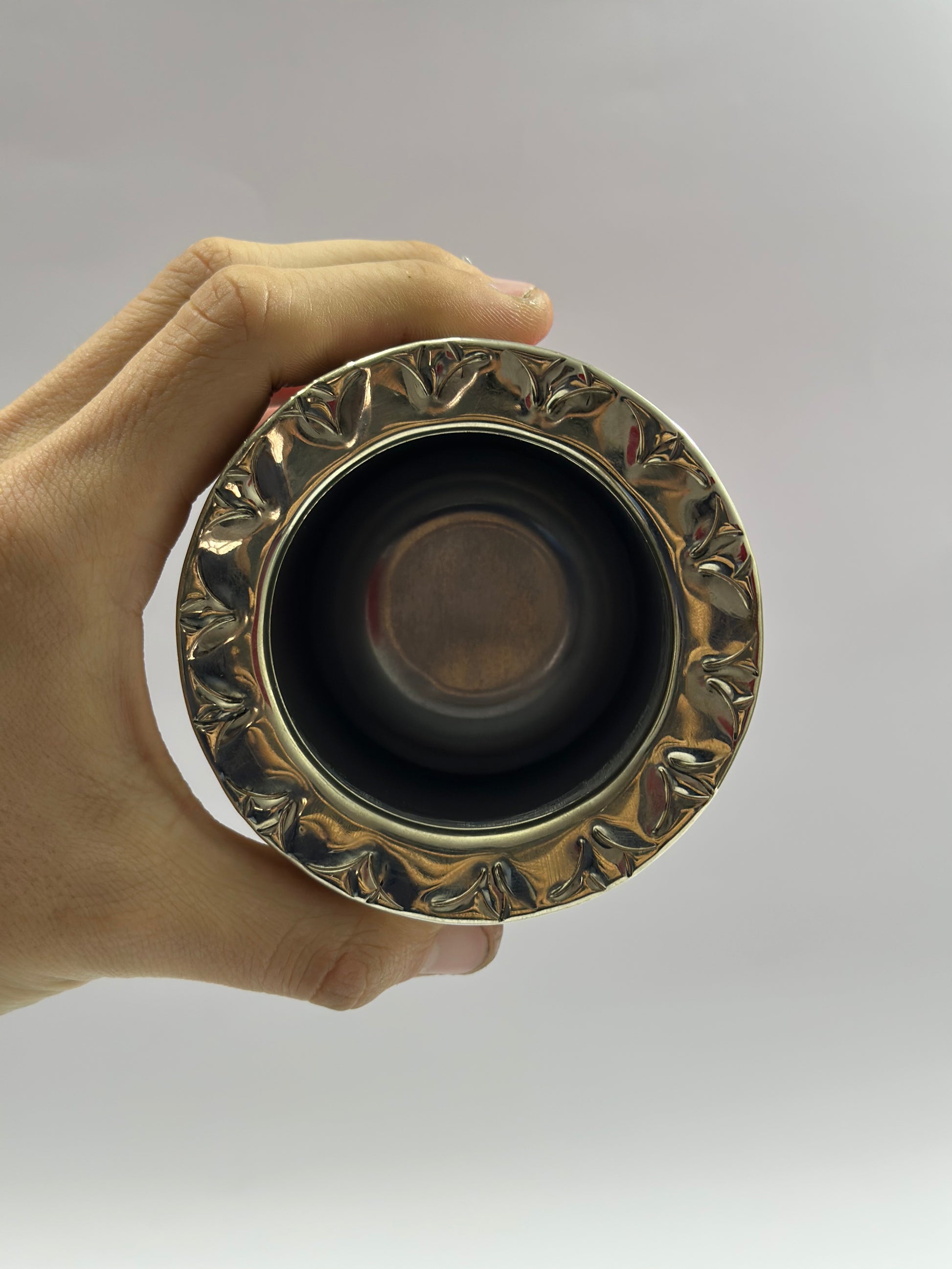 Mate imperial interior de acero con virola de alpaca Cincelada , cuenta con su exterior forrado en cuero , ideal para quienes gustan disfrutar de unos buenos mates sin la preocupación de tener que curar y cuidar en el caso de que fuera interior calabaza. Fácil lavado y práctico.