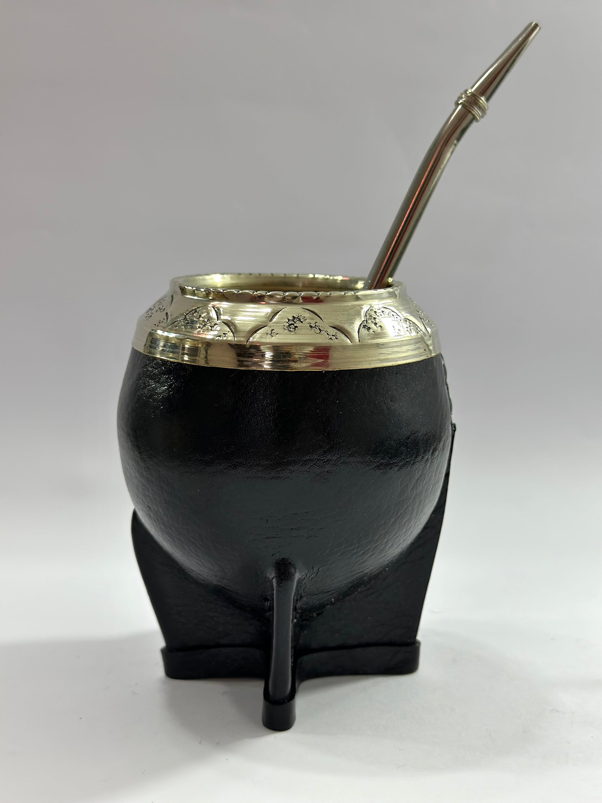Mate Torpedo Negro de Calabaza + Bombilla de Acero Tradicional