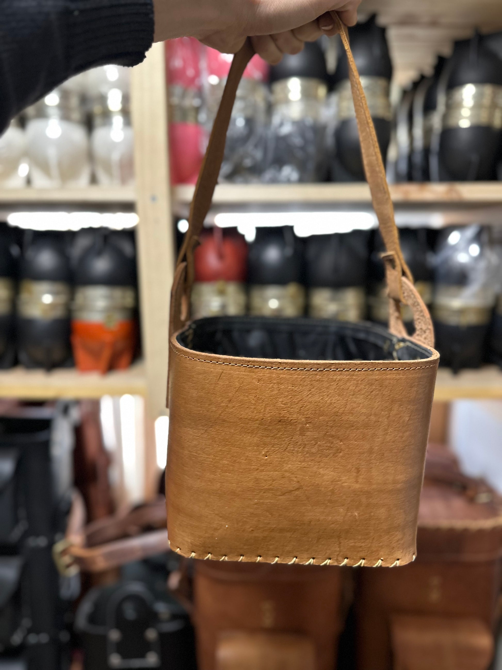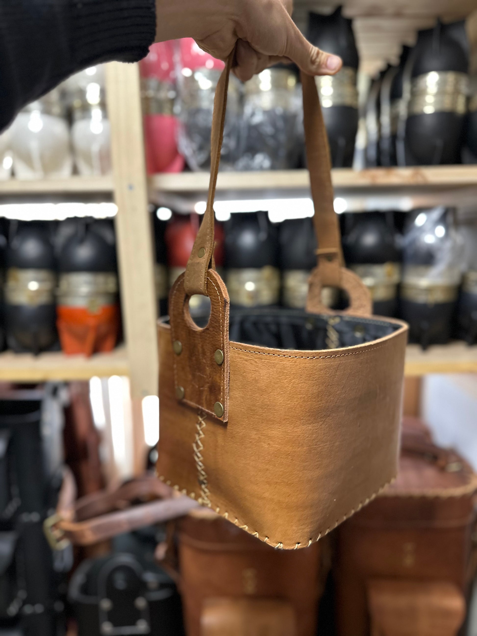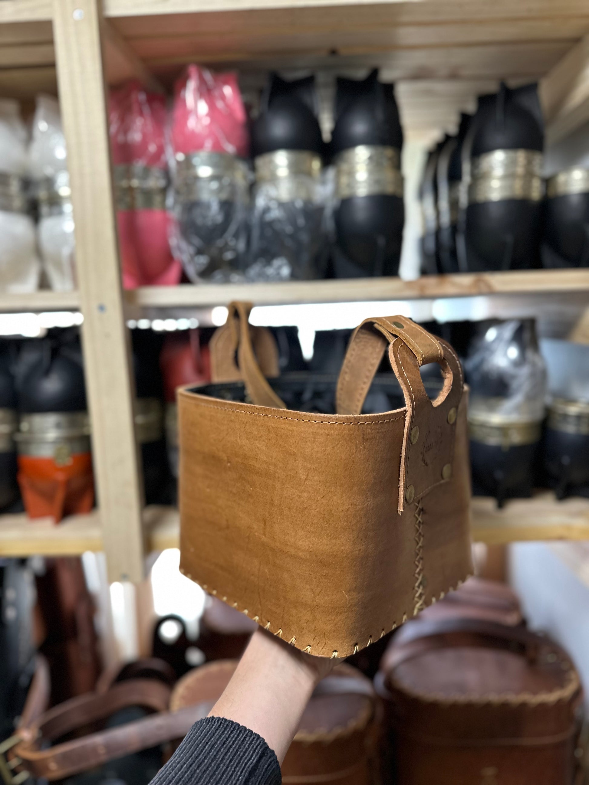 Matera de cuero 4 compartimentos, en su interior cae todo un kit matero, desde un termo 1.5 Litros o más, mate imperial u otros estilos, yerbero de cuero y azucarero.