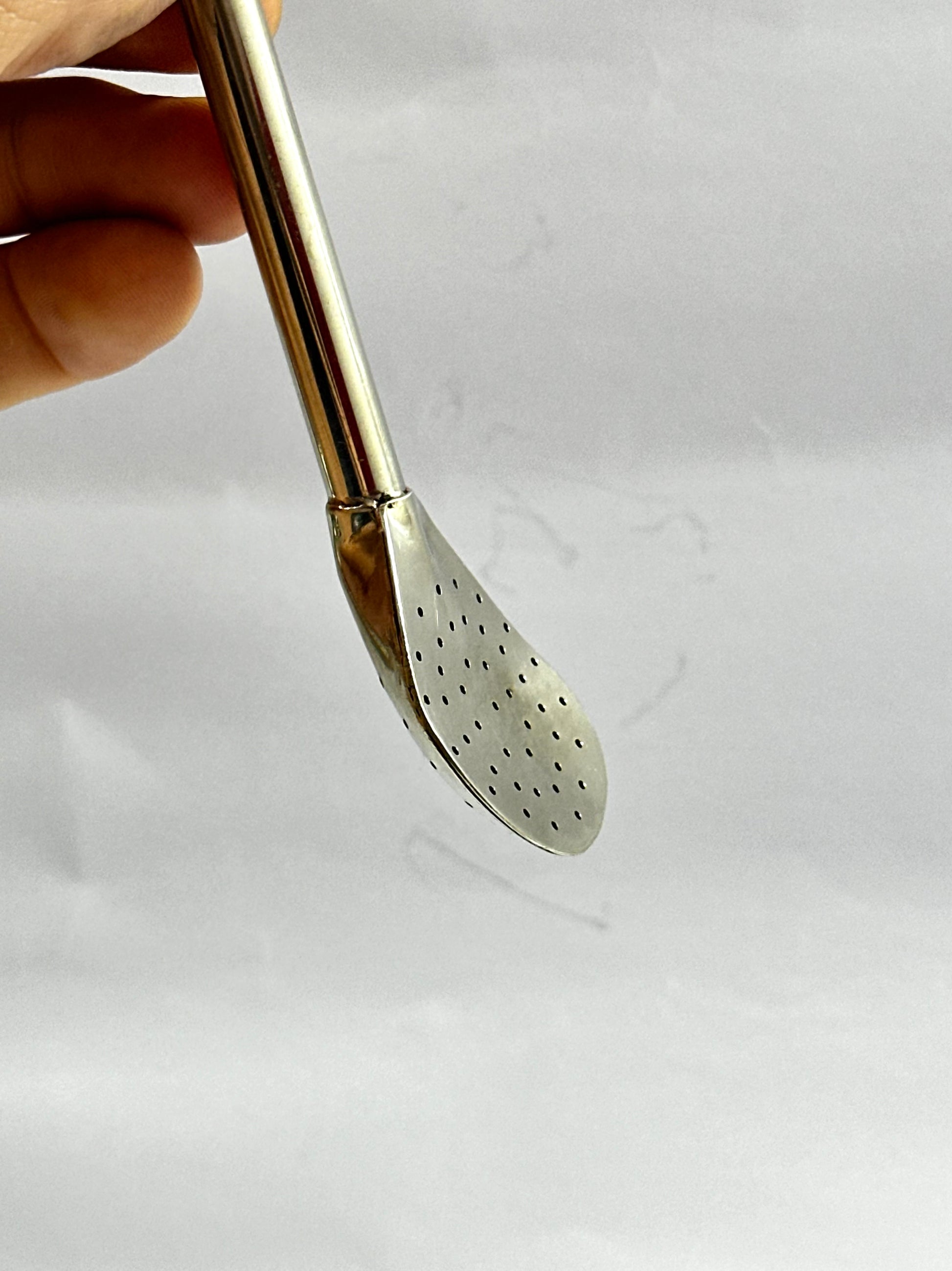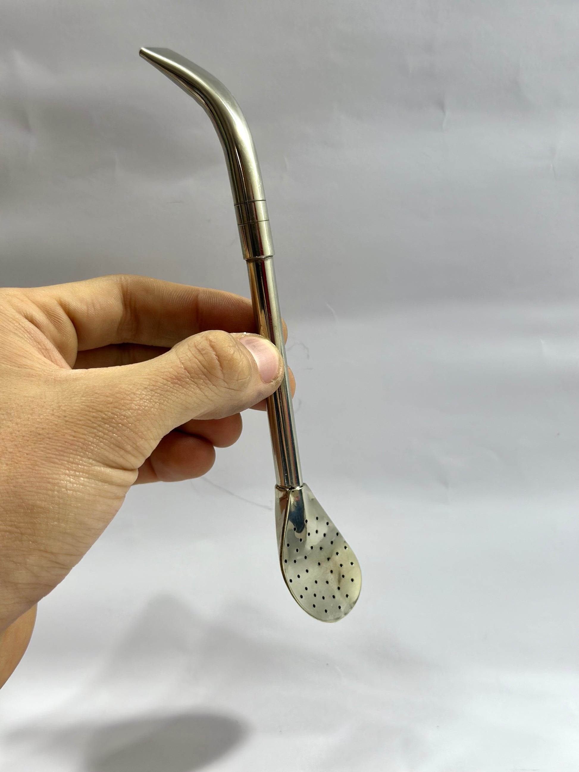 Bombilla de alpaca maciza con punta pico de loro también en alpaca, su filtro es de carácter XL, ideal para quienes gustan matear cómodamente sin tener la preocupación de que el filtro esté tapado e interrumpa el flujo del agua al matear. Además esta soldada en plata a su estructura , haciendo que este sea duradero durante bastante tiempo.