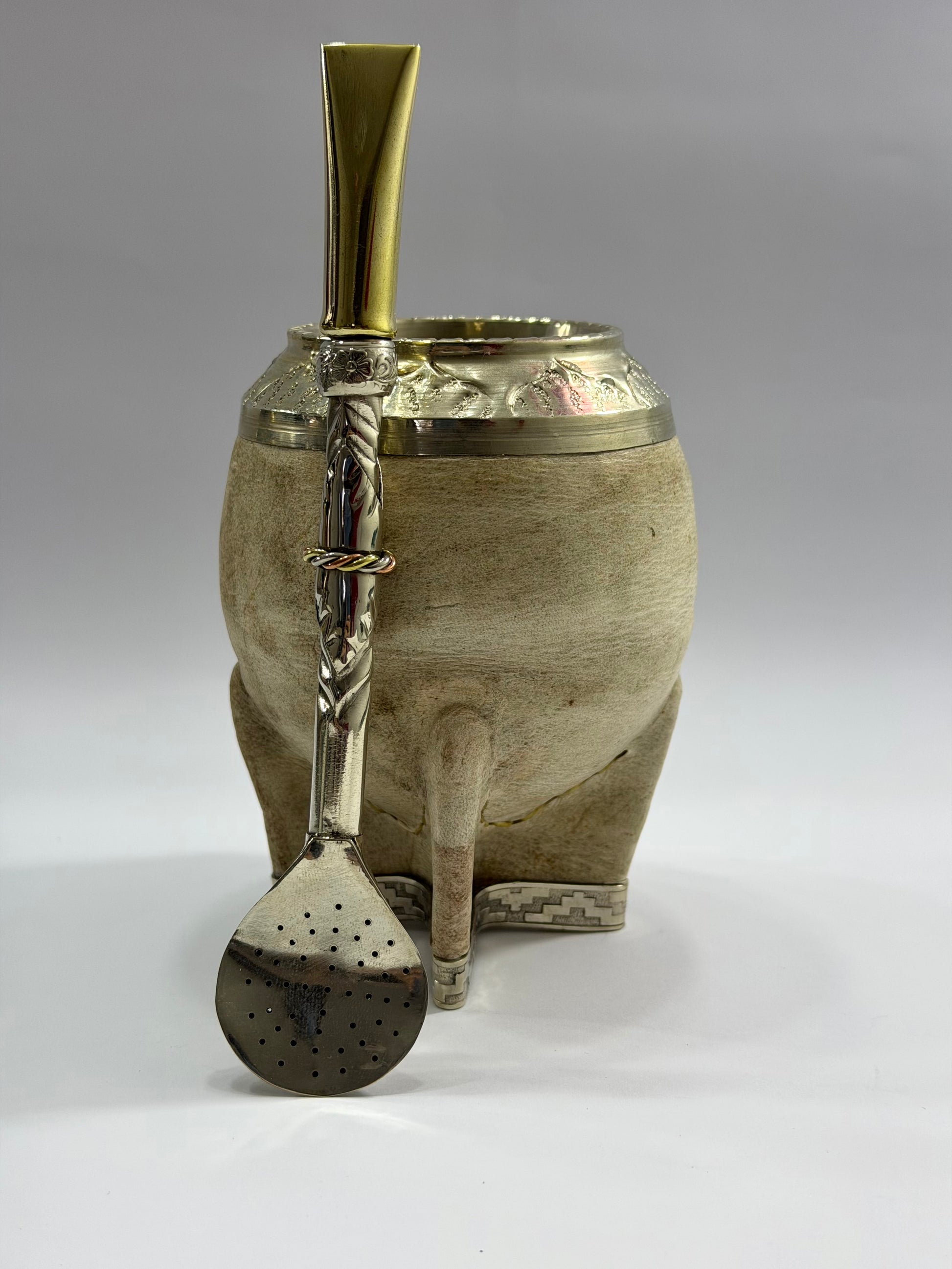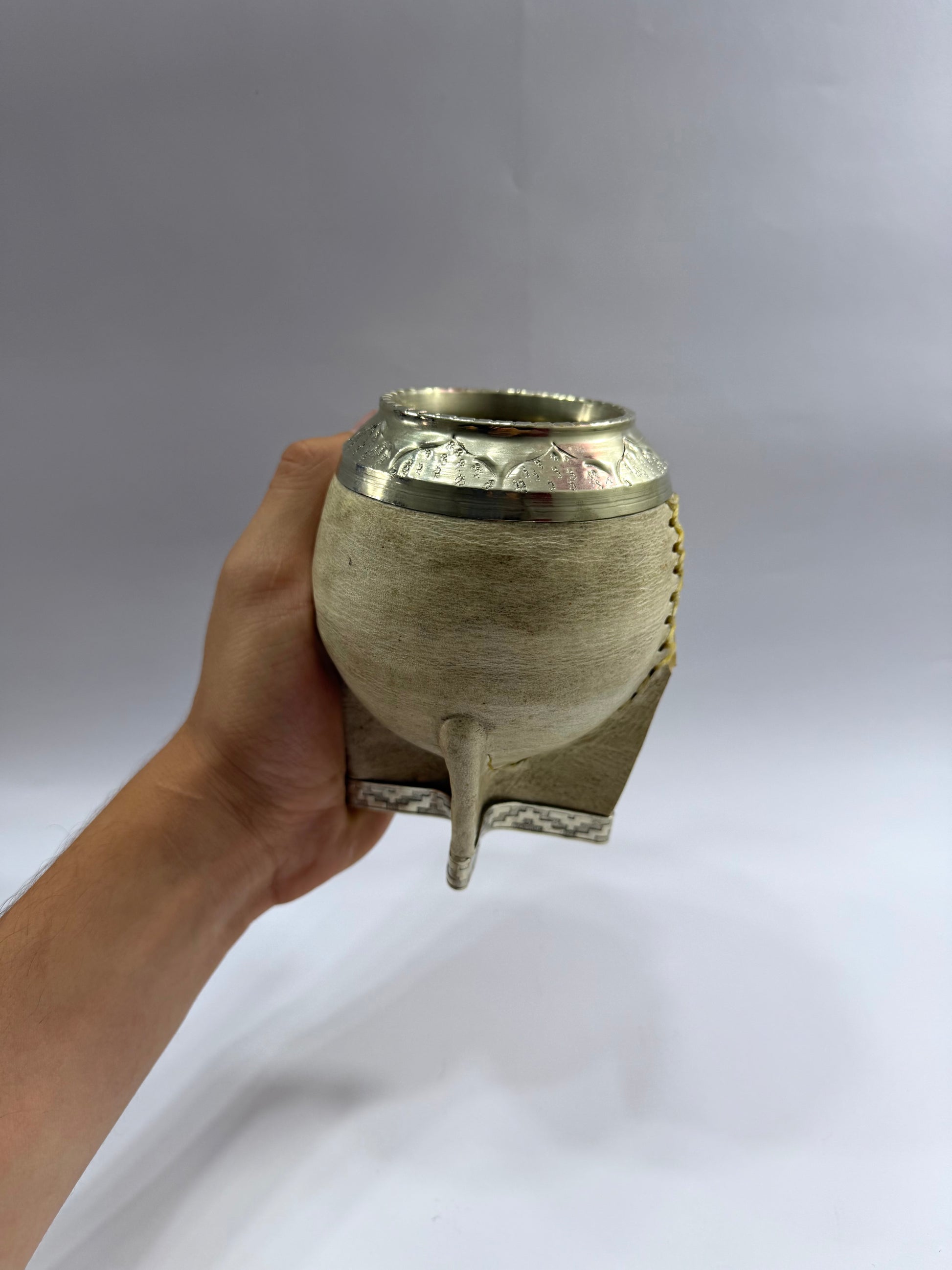 Torpedo De Calabaza Trabajado en Cuero Crudo con Base Fleje de Alpaca